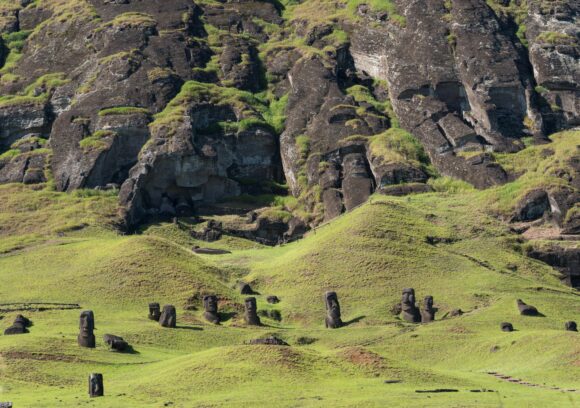 Comenzando con los famosos Moáis, estas estatuas gigantes de piedra son una de las principales atracciones de la isla. Puedes verlos en toda la isla, pero especialmente en el Parque Nacional Rapa Nui, donde se encuentran algunos de los más impresionantes.