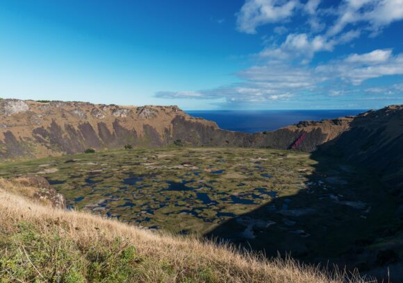 Si te gusta el senderismo, no puedes perderte el camino que lleva a la cima del volcán Rano Kau. Desde allí, tendrás vistas panorámicas del mar y de la isla, así como la oportunidad de ver el hermoso lago dentro del cráter.