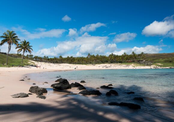 Además de los Moáis, la Isla de Pascua tiene hermosas playas donde puedes disfrutar de un día de sol y mar. La playa de Anakena es una de las más populares y cuenta con aguas cristalinas y arenas blancas.