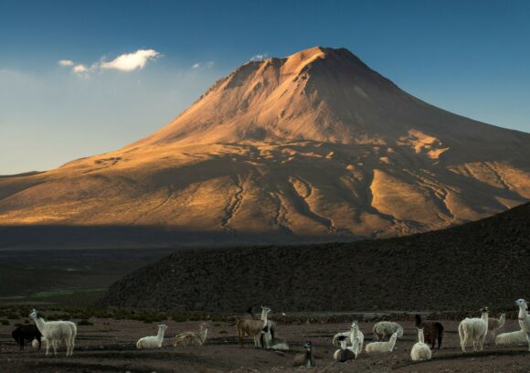 This volcano, also known as "Nevado Cariquima," rises to 5,390 meters above sea level, in the middle of the high plateau and very close to the Bolivian border. Its name means "three men" in Quechua. Llamas, vicuñas, condors, and rheas can be seen in its surroundings. It has few ascents, as its remoteness and isolation put it out of the spotlight for mountaineers. Do you dare to climb it?